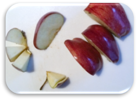 - Ask, “If you look at a globe or map, what is the main color you see?” (Blue) Cut the apple into four equal-sized wedges. Nearly three of these quarters represent land covered in water. Set these aside.
